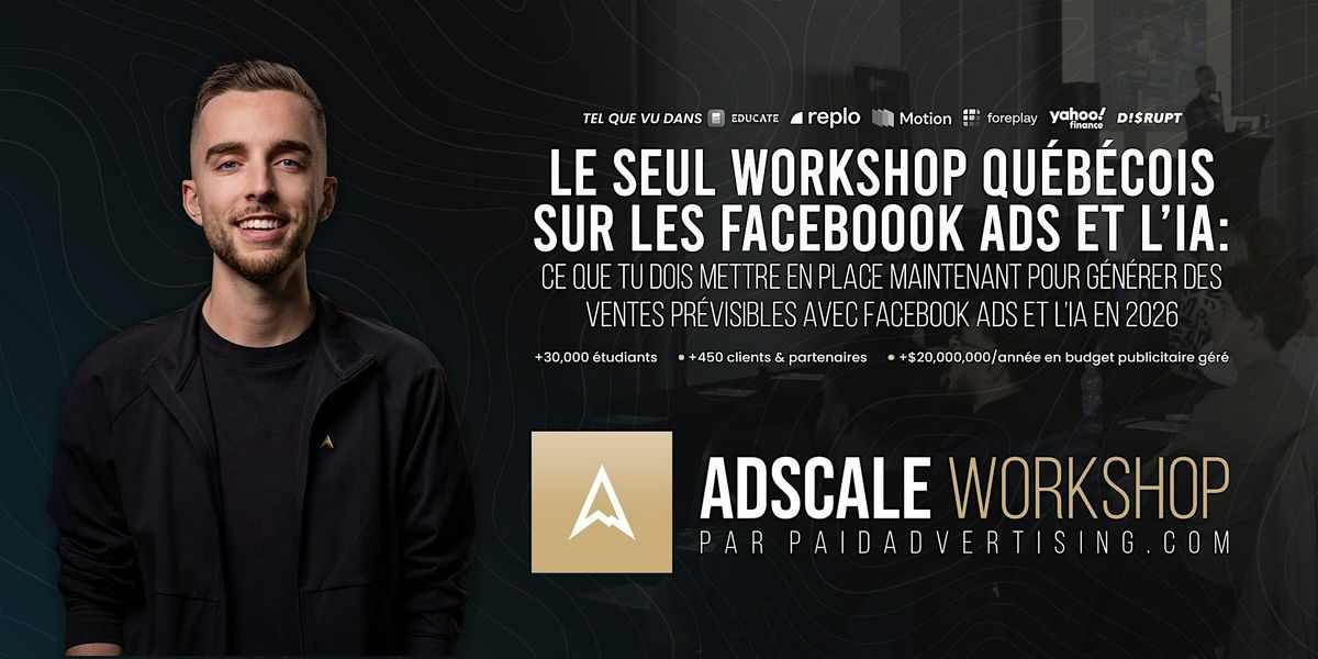 Le AdScale Workshop est le seul événement en personne à Montréal axé sur la publicité payante systématique pour une croissance prévisible. Ce programme intensif de 4 heures est conçu pour les propriétaires d’agences, coachs, entreprises de services et marques e-commerce qui en ont assez des revenus imprévisibles et qui souhaitent mettre en place un système publicitaire éprouvé et efficace.