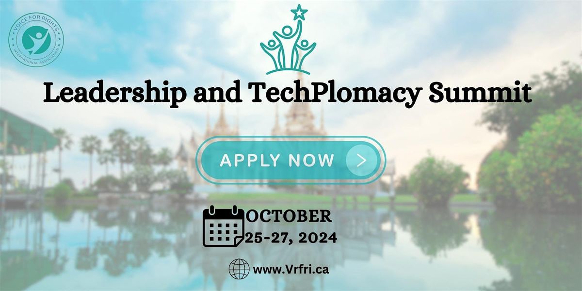 "Voice For Rights International Association Canada" have opened up applications for Join us for the Leadership & TechPlomacy Summit, a premier event bringing together global leaders, tech innovators, and policy makers to explore the intersection of technology and diplomacy. This summit will delve into the latest trends in digital transformation, global governance, and the role of technology in shaping international relations.2024. Join us for the Digital Leadership & TechPlomacy Summit, a premier event bringing together global leaders, tech innovators, and policy makers to explore the intersection of technology and diplomacy. This summit will delve into the latest trends in digital transformation, cyber governance, and the role of technology in shaping international relations.