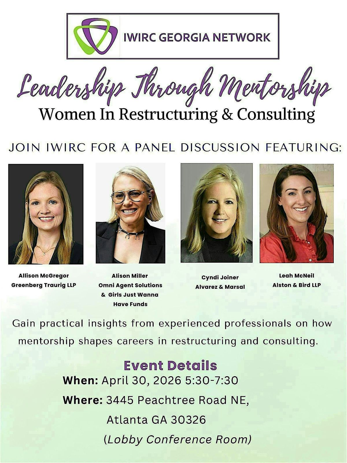 Gain practical insights from experienced professionals on how mentorship shapes careers in restructuring and consulting.About this Event