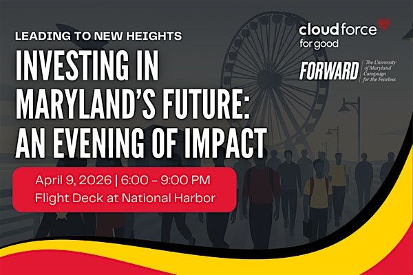 Join Cloudforce and the University of Maryland for Investing in Maryland’s Future: An Evening of Impact—a special fundraising event supporting a transformative leadership program for transfer students from Montgomery and Prince George’s counties.