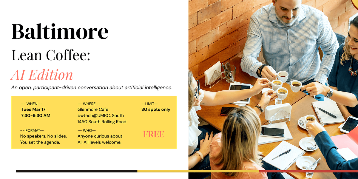 An open, participant-driven conversation about artificial intelligence in work and life. No speakers. No slides. You set the agenda.