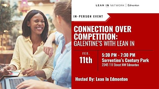 Join Lean In Edmonton on Wednesday, February 11, from 5:30–7:30 PM at Sorrentino’s Century Park for Connection Over Competition: Galentine’s with Lean In — a Circle Information Session designed to bring community members together in the spirit of connection, collaboration, and collective growth.