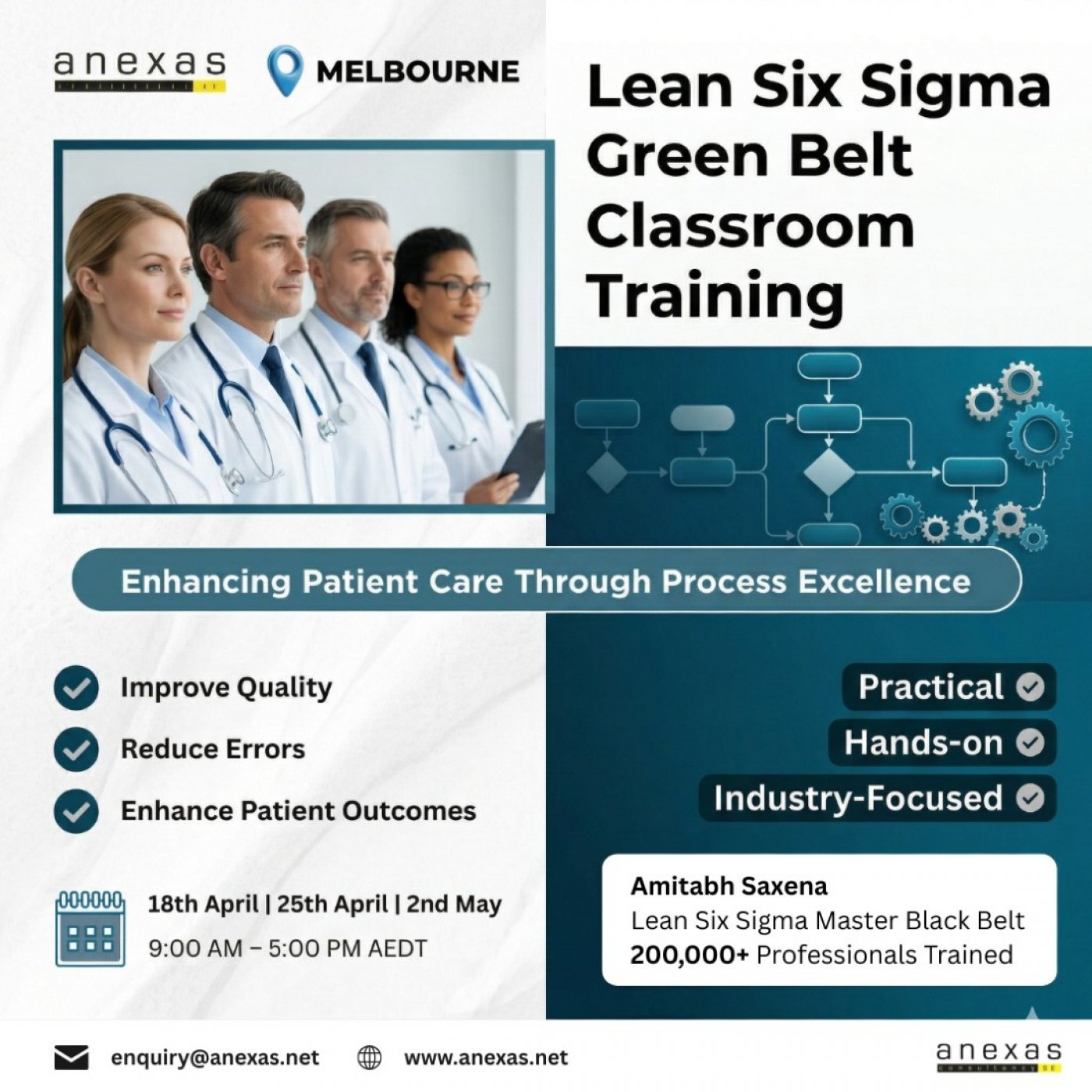 Anexas is proud to offer Lean Six Sigma Green Belt Classroom Training for Healthcare in Melbourne, designed specifically for healthcare professionals who are committed to improving quality, patient safety, and operational efficiency.