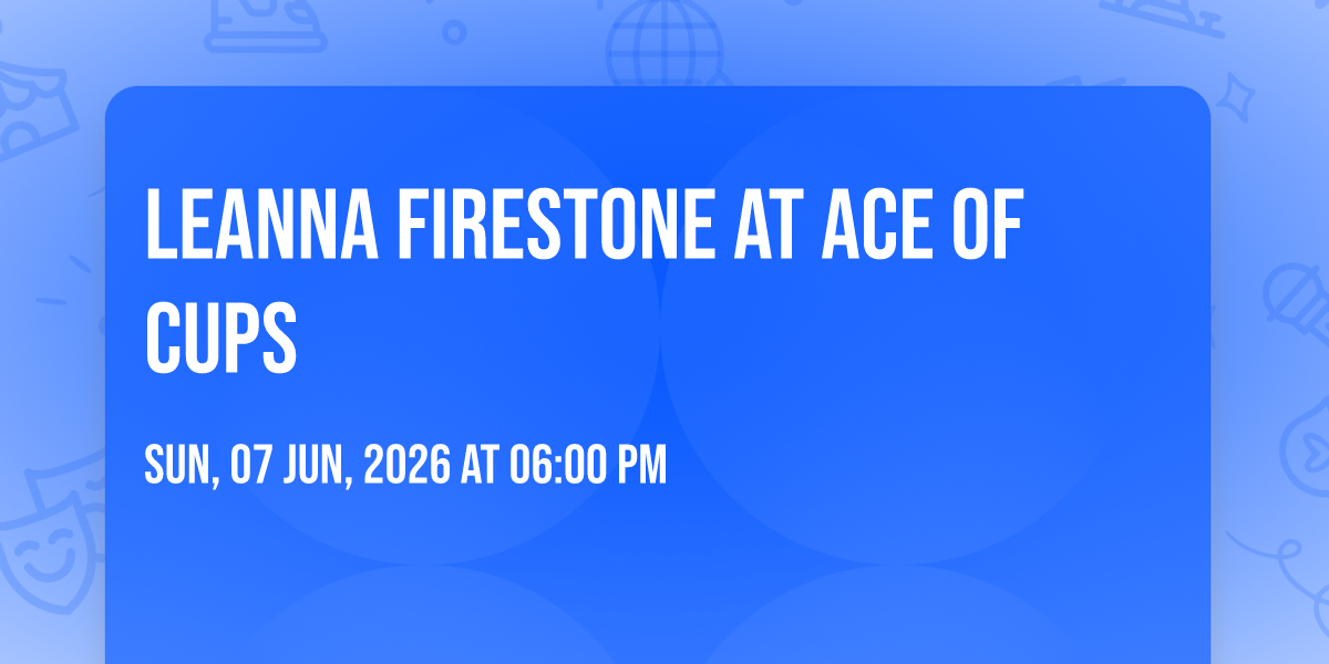 🌟 Journey into wonder at Leanna Firestone at Ace of Cups, where extraordinary experiences await around every corner! 🏛️ Set against the backdrop of Ace of Cups in dynamic Columbus, OH, this event promises to exceed all expectations. 📅 Join us on June 7th, 2026 at 06:00 PM for a celebration that combines innovation, entertainment, and community spirit in perfect harmony. ✨ There will be an atmosphere where memories are made and stories come alive, ensuring every guest experiences something truly remarkable. 🎊 This is more than just an event; it's a journey into the extraordinary!