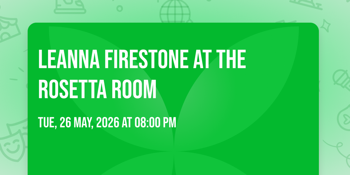 ✨ Discover the extraordinary at Leanna Firestone at The Rosetta Room, where magic meets reality in ways you've never imagined! 🏛️ Set in The Rosetta Room nestled in bustling Mesa, AZ, this event promises to be a landmark occasion. 📅 Taking place on May 26th, 2026 at 08:00 PM, it's going to create an atmosphere where every moment becomes a cherished memory. 🌟 Immerse yourself in an experience crafted with attention to every detail, designed to surprise and delight at every turn. They have worked tirelessly to ensure this event exceeds all expectations, bringing together elements of entertainment, innovation, and pure joy. 🎊 Don't miss your chance to be part of this remarkable journey!
