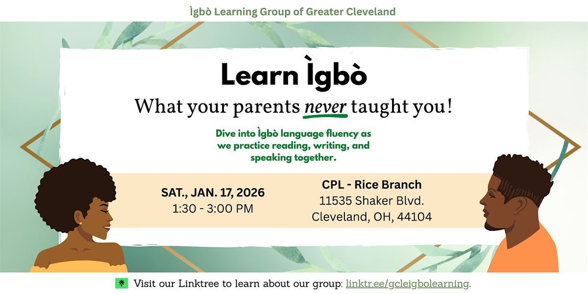 Join us on Sat., Jan 17 where we'll practice reading, writing and speaking Ìgbò. Sign up here: https://luma.com/45wvj9b2About this Event