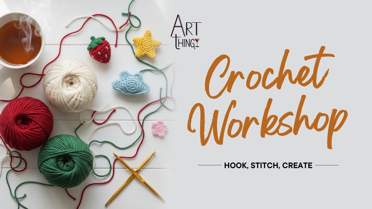 Join our Crochet Workshop for a deep dive into the craft! Whether you`re picking up a hook for the first time or looking to refine your tension and technique, this session offers focused instruction and immediate results.What You Get with Your Ticket:Hands-On Learning: Dedicated time with an instructor to practice and perfect your stitches.Comprehensive Kit: All the yarn and tools you need are provided.Workshop hosted by The Art Thingy.