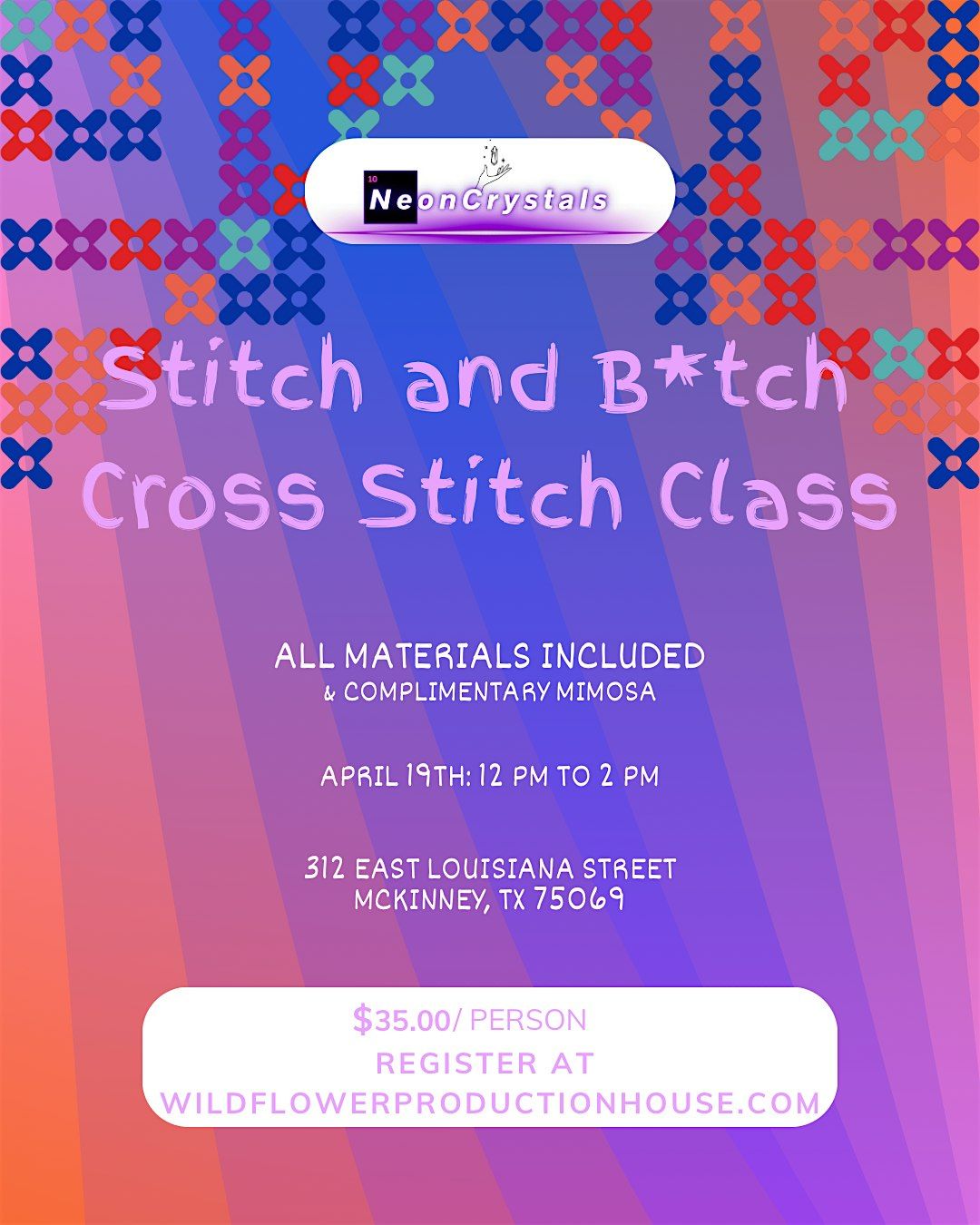 April 19, 2026 at 12:00 PM at The Wildflower Production House for a fun and relaxed cross stitching session. Whether you're a total newbie or just want to hang out and stitch with others, this is the place to be.
