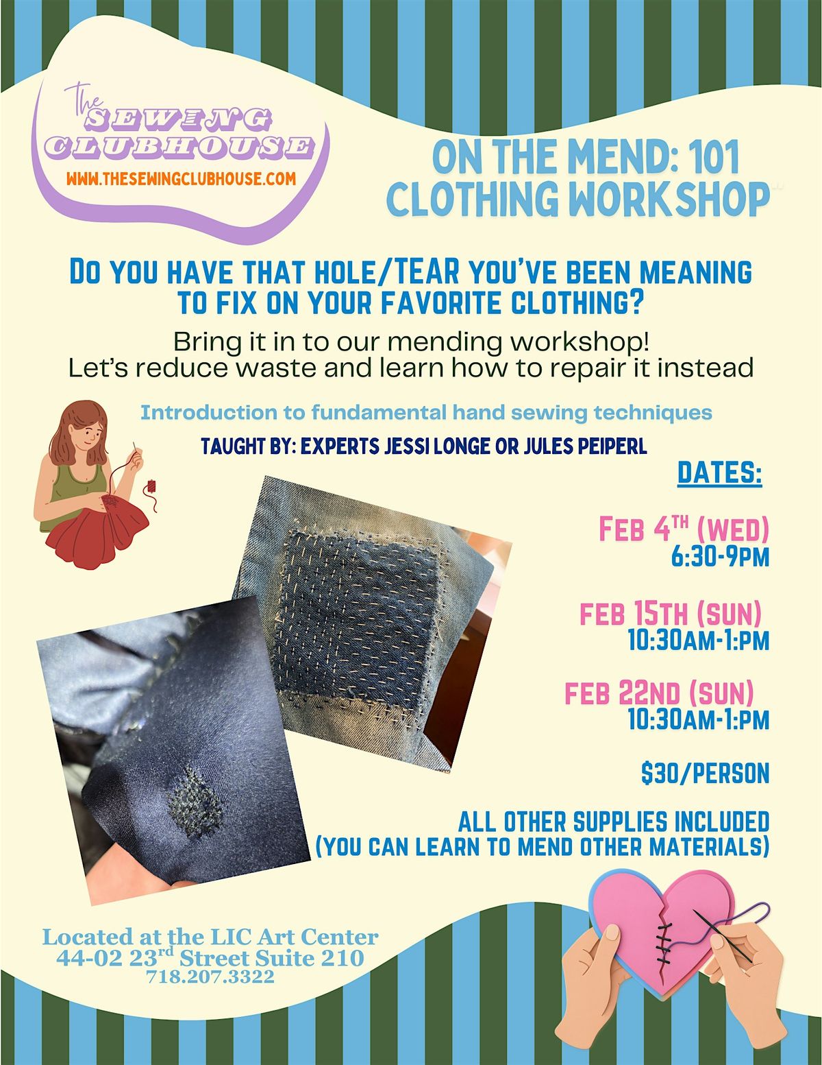 Join us for a Clothing Mending Workshop, a 2.5-hour session designed to teach different hand-sewing stitches and techiques.