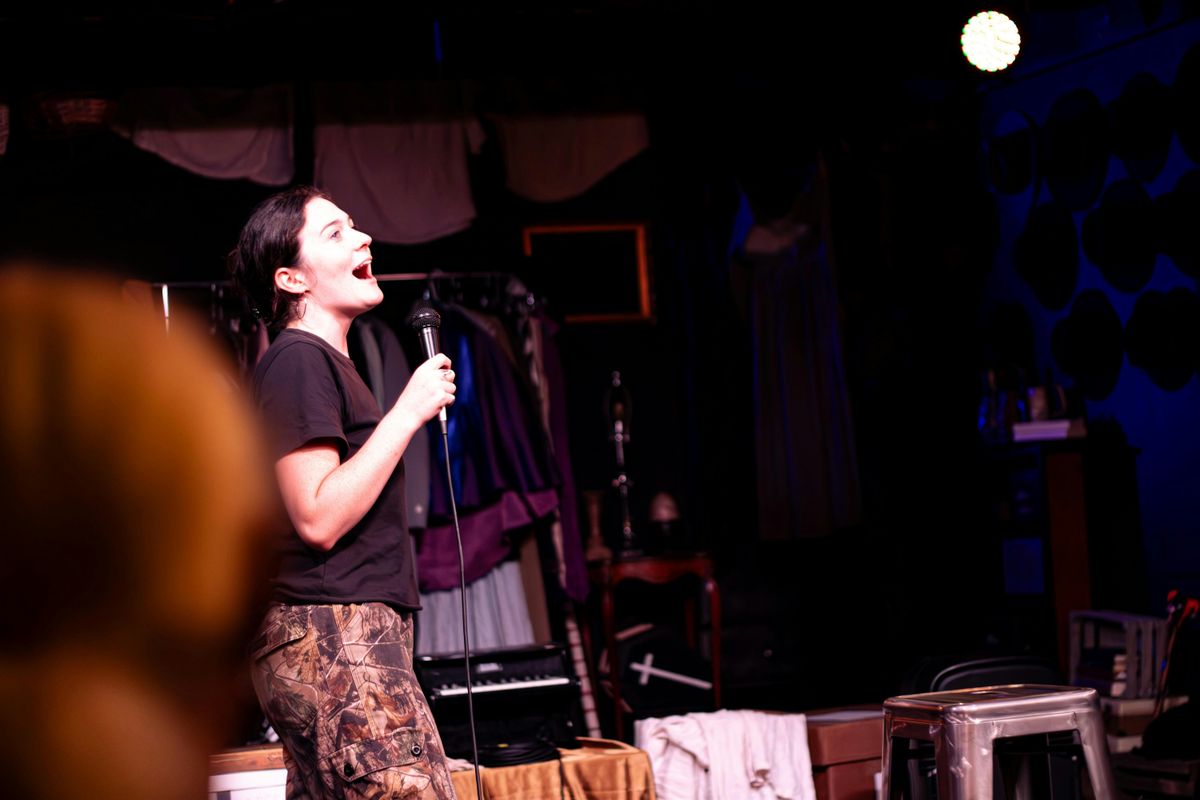 The workshop culminates in a live showcase performance where students perform their material for an audience.