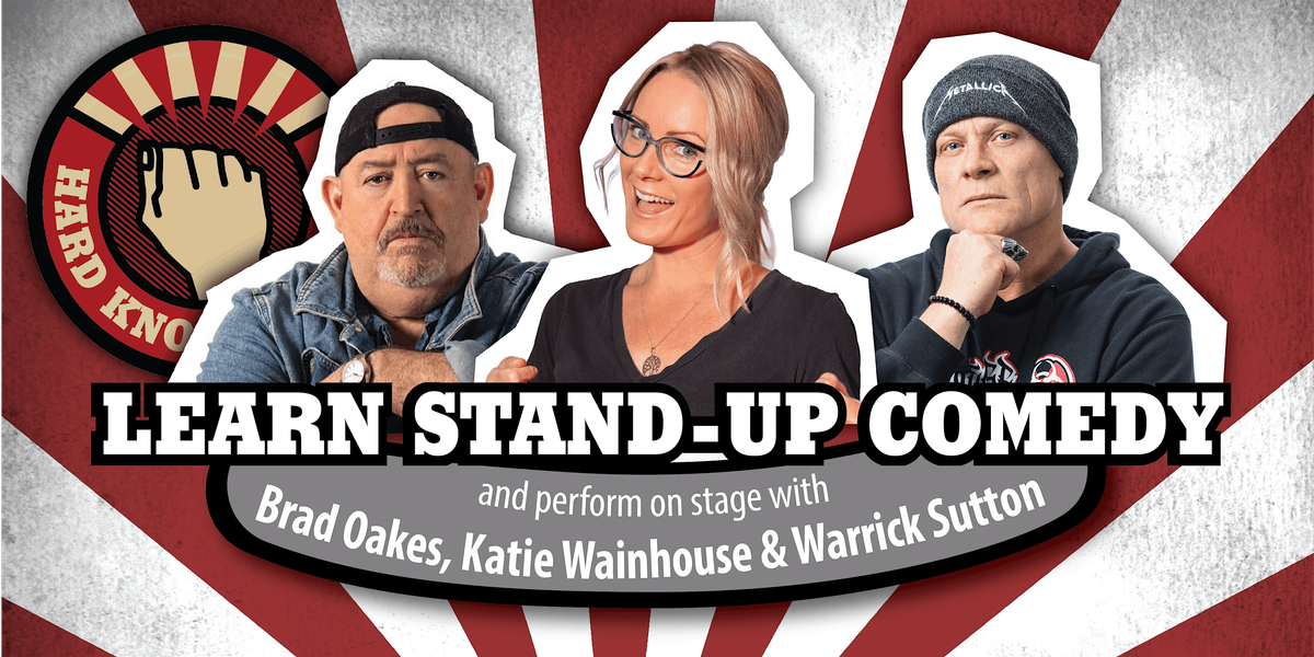 Learn stand-up comedy in Melbourne over 5-evenings from Sunday to Thursday, 6.30 pm to 9.30 pm, from January 18 to 22, 2026. You’ll get the Hard Knock Knocks comedy manual, our complementary online course, video of your graduating performance, professional headshots for future marketing, and loads of one-on-one coaching from our resident comedy coach, Brad Oakes, our returning alumnus, Warrick Sutton, and celebrity comedian Katie Wainhouse.