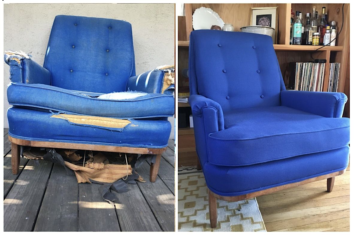 By the end of the workshop, participants will leave with a reupholstered armchair and the foundational skills needed to confidently approach future upholstery projects.