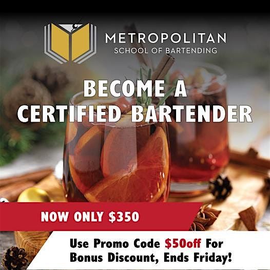 20-hour Bartender Training Course Monday – Thursday, 10-3 pm
