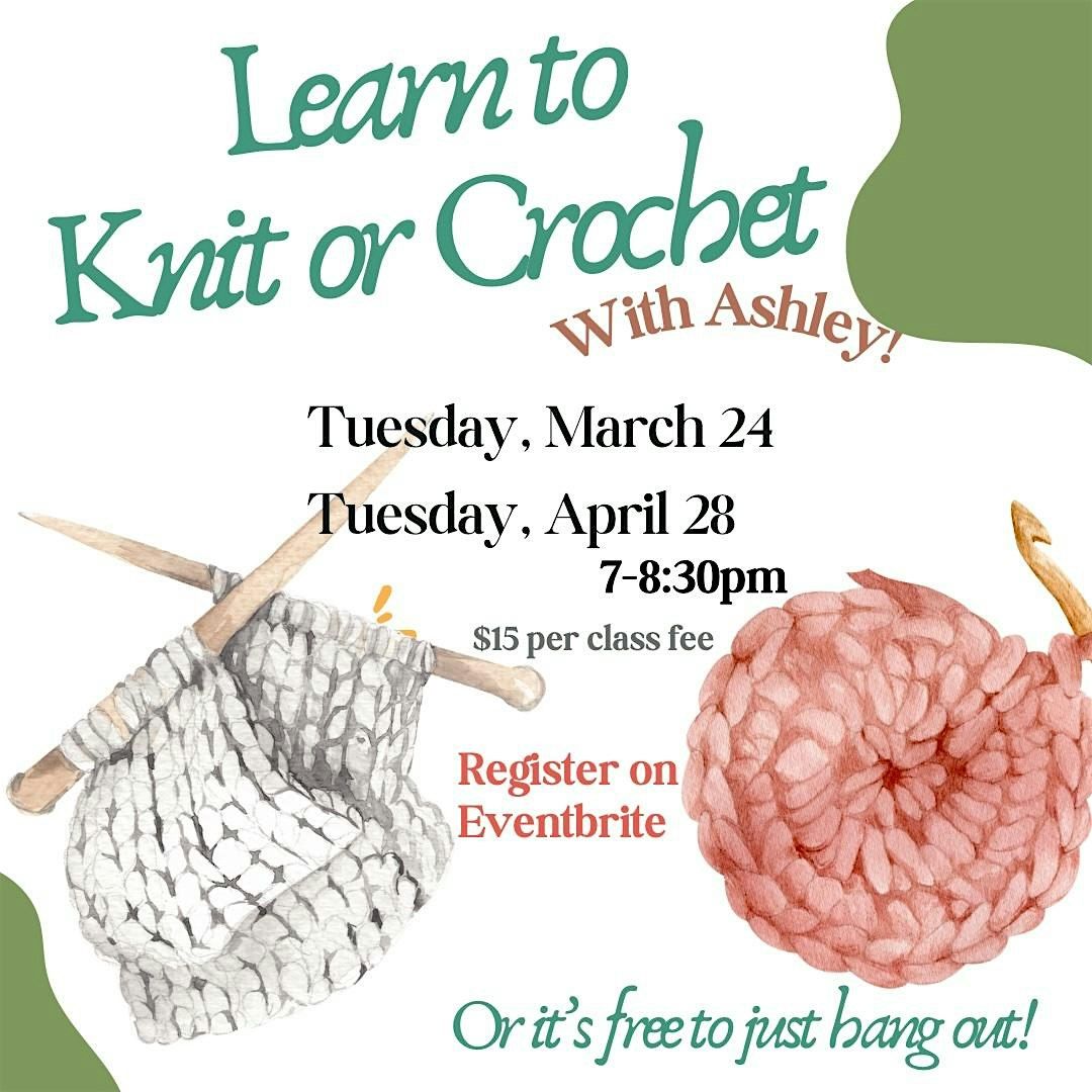 Do you want to learn to knit but are unsure where to start? Join us for an hour and half long class on the basics of knitting or crochetting.