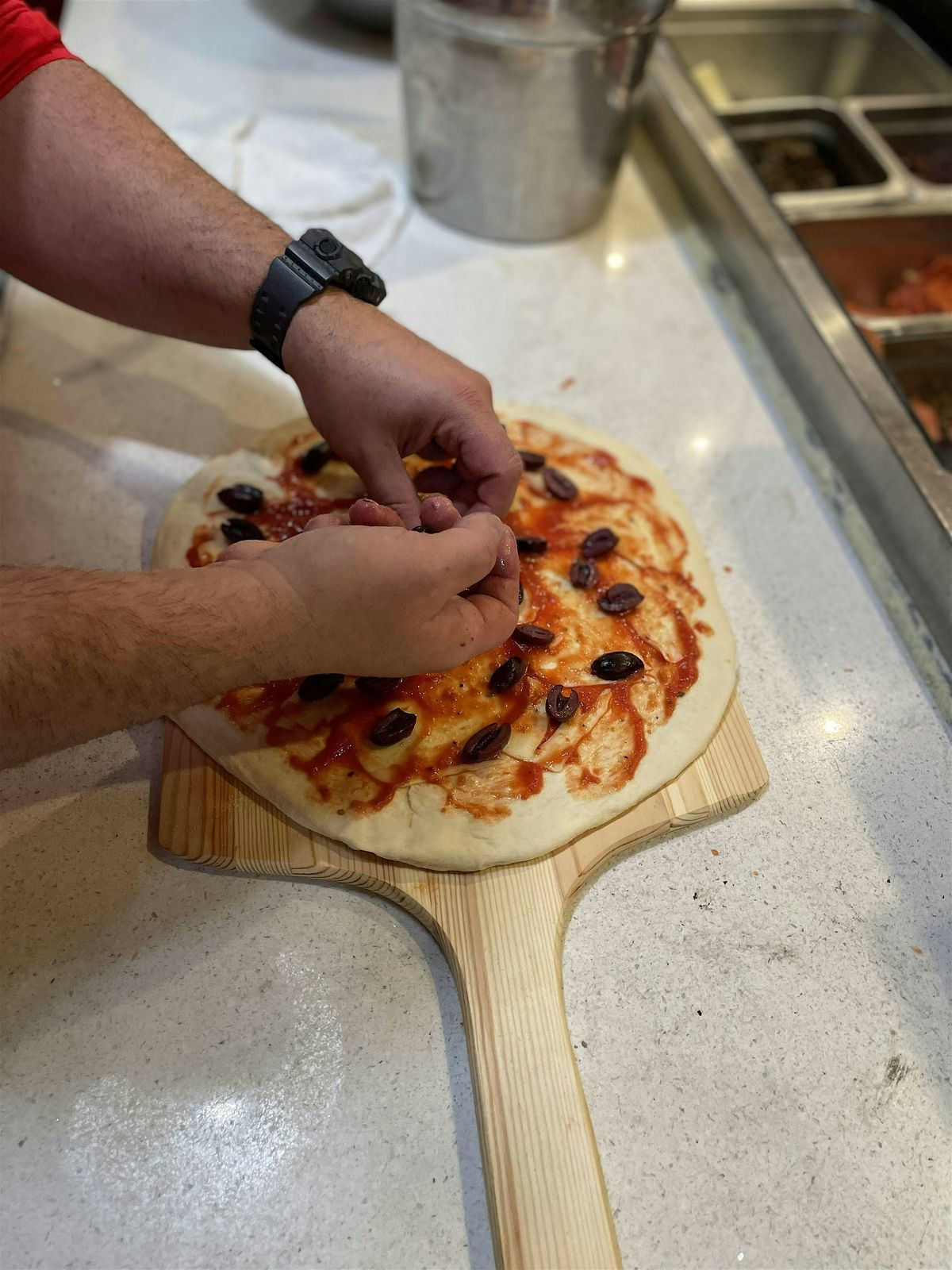 Throughout the class, you’ll hear Chef Bellucci’s story and extensive pizza background as you learn to hand-stretch a 12” pizza.