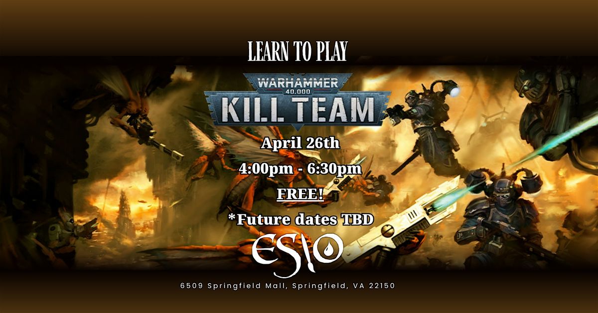 Come learn how to play Warhammer K*ll Team for free. K*ll Team is a small scale table top game set in the Warhammer 40k universe. It has its own rules and mechanics and offers its own unique and fun playing experience for players.