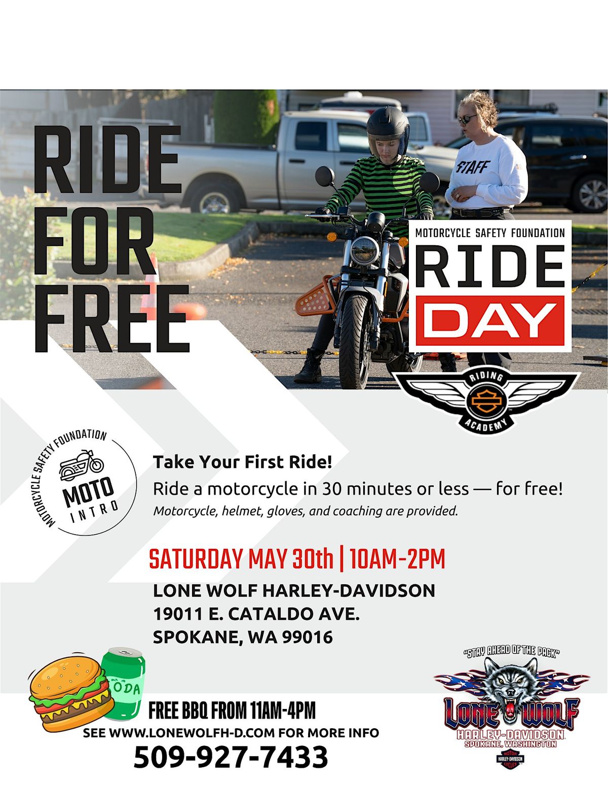 Join us for our second annual Motorcycle Safety Foundation RIDE DAY. We provide the motorcycle, helmet and gloves and coaches!