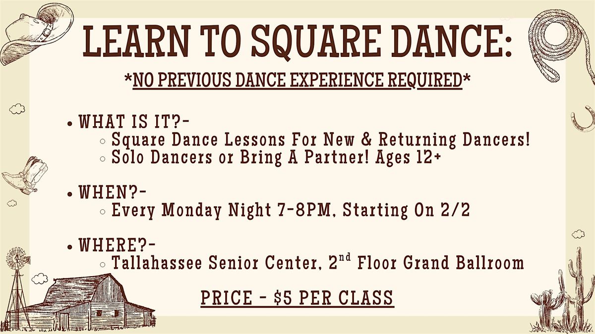 Starting on 2/2, join The Capital Twirlers for Square Dance lessons every Monday!