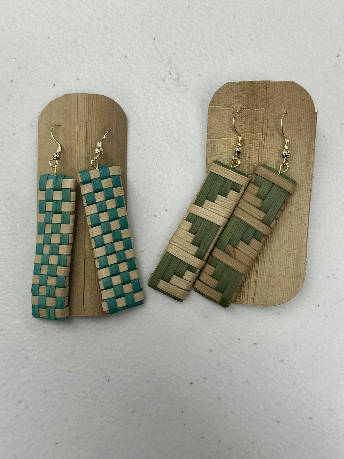 All materials, including carefully harvested, cleaned, and prepped lauhala, are provided. Each student can make one pair of (pierced) Lauhala earrings.