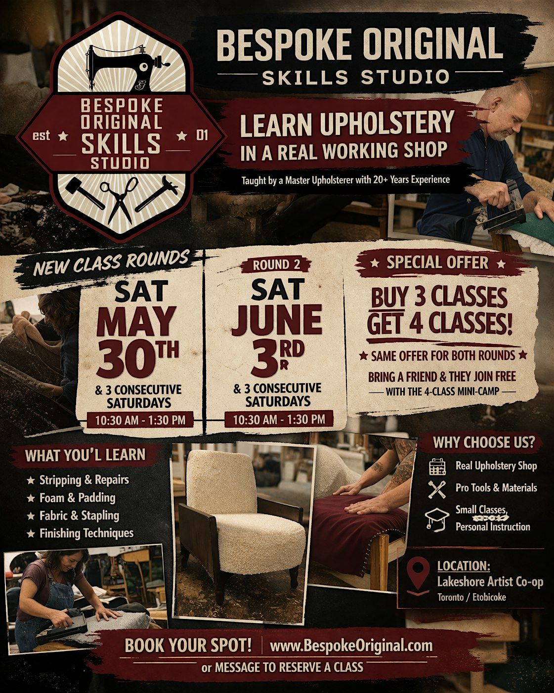 If you’ve always wanted to learn upholstery, this is your chance to do it with real guidance instead of guessing from YouTube.
