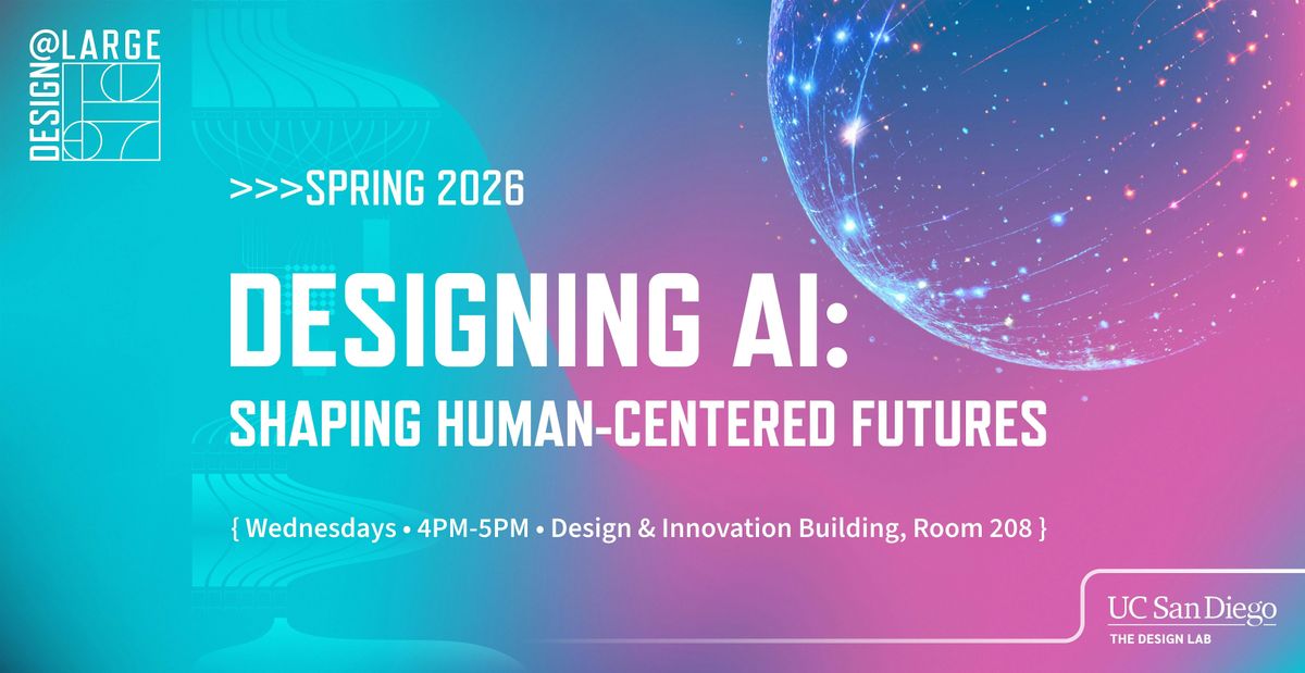 Design@Large is open to the broader public and livestreamed online, while also serving as a core seminar for over 100 undergraduate and graduate students at UC San Diego. Together, we ask: What does it mean to design AI responsibly? How do we ensure that intelligent systems amplify human capability without reproducing harm? And how can design guide AI toward more just, inclusive, and sustainable futures?