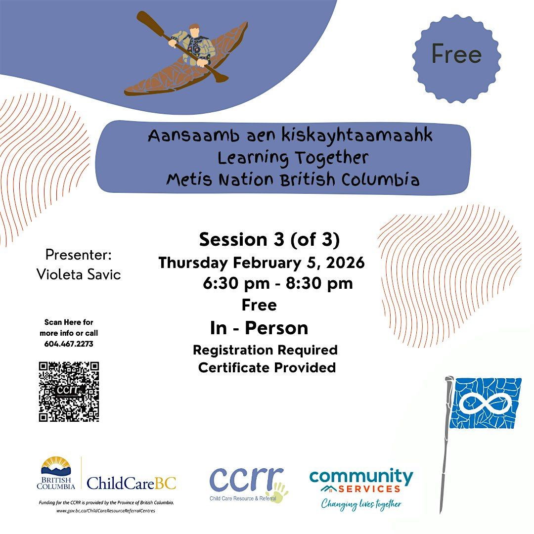 Presenter Violeta Savic is a Child Care Navigator for Metis Nation British Columbia who has nearly 25 years experience working in the Early Childhood Education Field. She collabortes closely with Metis Chartered communities, Metis families and the Ministry of Education team to ensure successful, efficient and effective delivery Metis early years programs and delivery. There are three sessions to these teachings with "Session One" providing a brief foundational overview to who the Metis are and why it is important to include Metis content and pedagogy in early childhood education. Violetta is an ethusiastic and passionate presenter who will inspire attendees about the Metis culture.