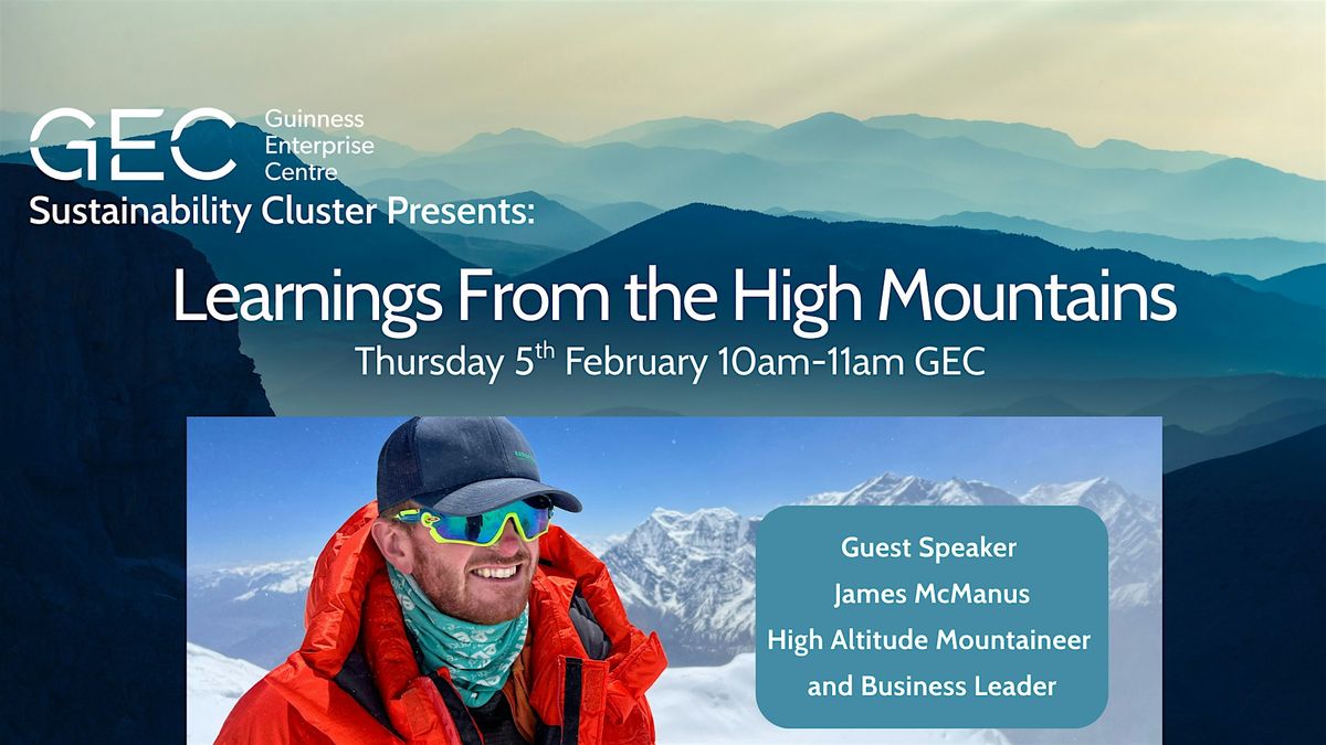 The Guinness Enterprise Centre Sustainability Cluster presents Learnings from the High Mountains. Join Irish high-altitude mountaineer and business leader James McManus for an inspiring keynote where he connects the extreme challenges of climbing the world’s highest peaks to building a resilient, high-performing business.Drawing on his mission to summit Mount Everest without supplementary oxygen and his two decades of leadership with Earth's Edge, Ireland's most trusted expedition company, James distills powerful lessons for today's fast-moving business world