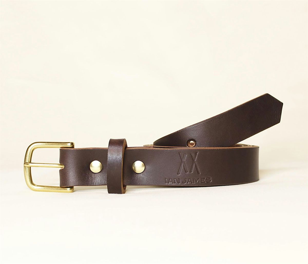 The belts will be made from one solid strip of leather that will last many years and patina beautifully with daily use. You can choose from three leather colors: mid brown, dark brown, and black. You will also have five hardware choices: silver, matte silver, brass, antique brass, and matte black.