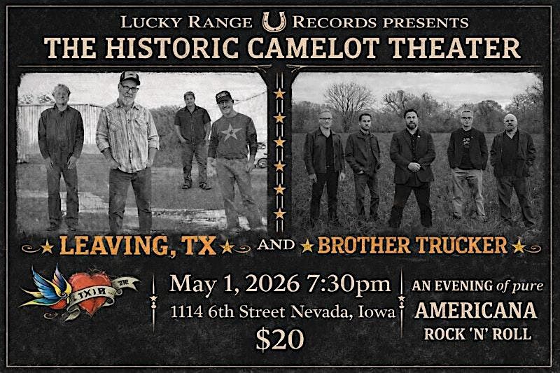 Gripping vocals, intelligent lyrics, and songs filled with memorable hooks are what you will find with Leaving,TX. This original Americana / alt.country outfit is fronted by award winning songwriter Chris Patterson blending Heartland storytelling and Twang-Rock Grit. This band has earned national and international attention with two CDs in the top 10. They have opened for Rascal Flatts, little Big Town and Kenny Chesney.