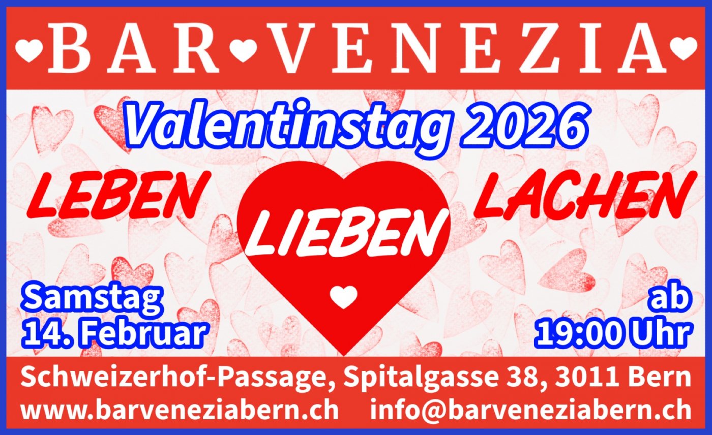 Am Valentinstag feiert die Bar Venezia ab 19:00 Uhr das Leben, die Liebe und das Lachen, mit coolen Drinks und Musik aus den 70-90iger Jahren – Hits und Remixe lassen niemanden stillsitzen.