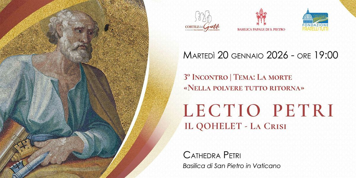 Dopo il grande successo delle edizioni precedenti, tornano le Lectio Petri, i suggestivi appuntamenti organizzati nella Basilica di San Pietro dalla Fondazione Fratelli tutti e dalla Fondazione Cortile dei Gentili.
