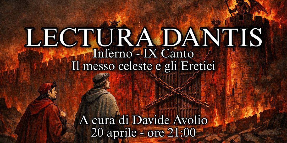 Un incontro speciale dedicato a Dante Alighieri e al suo capolavoro, la Divina Commedia. Io preferisco definirla una Stand Up Dantis, poiché l'atmosfera usata per introdurre e spiegare il Canto è assolutamente leggera e volta al vostro intrattenimento, così che si possa passare insieme una serata diversa e apprezzare appieno l'opera dantesca.