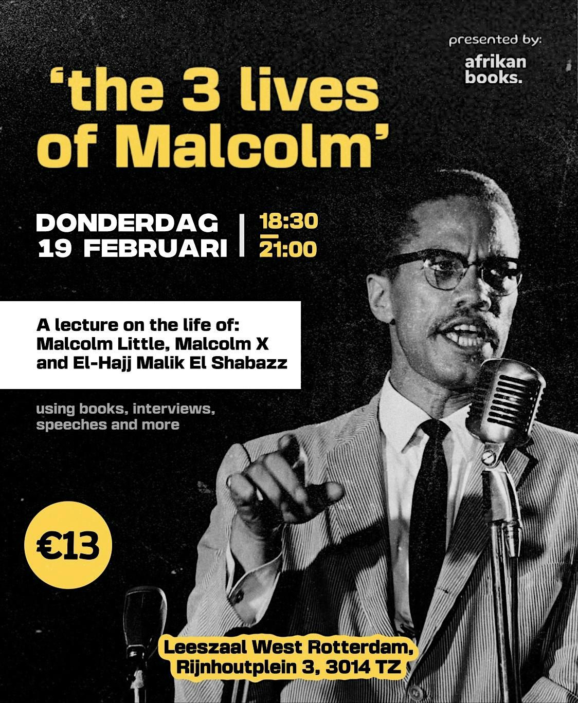 In this lecture we will dive deeper into the three phases of his life (as Malcolm Little, Malcolm X and El-Hajj Malik El Shabazz) by reading out of books, listening to part of speeches/interviews, storytelling and more. Also we’ll be dealing with common misconceptions around Malcolm and share important literature/resources to do your own research.