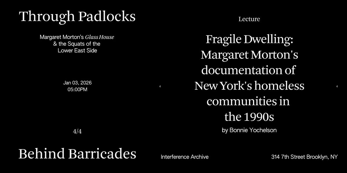 This panel discussion is part of a series of public programs around the exhibition Through Padlocks, Behind Barricades: Margaret Morton's Glass House and the Squats of the Lower East Side.