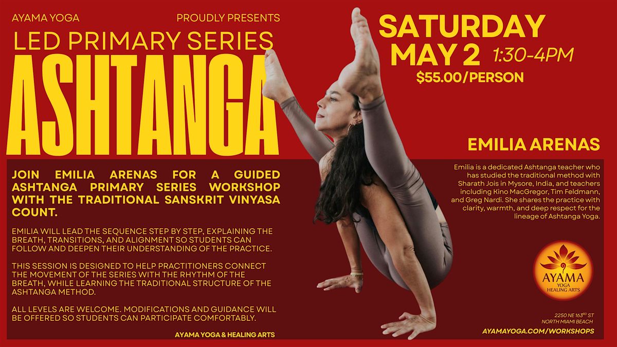 During this workshop, Emilia will guide students through the sequence using the traditional Sanskrit vinyasa count, while explaining the breath, transitions, and structure of the practice so students can follow and deepen their understanding.