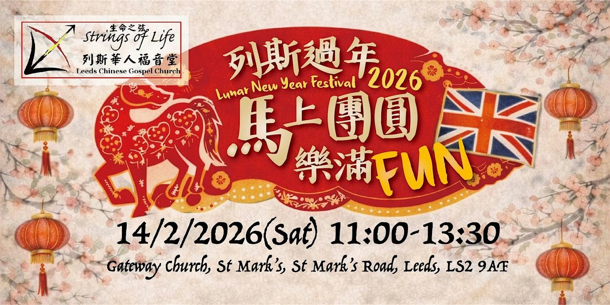 由 Strings of Life 生命之弦,基督教列斯華人福音堂(LCGC) 舉辦的農曆新年慶典,今年已踏入 第四年,亦成為我們引以為傲的年度大型傳統節慶。我們一向追求盡善盡美,今年同樣內容豐富、精彩好玩,誠邀列斯的親朋好友一同共聚,歡度一個 歡樂滿 FUN 的馬年新春!今年特別邀請 列斯副市長及多位社區重要人士蒞臨現場,為香港人打氣,並表達支持與關懷。列斯過年 2026,期待與你團圓相見!