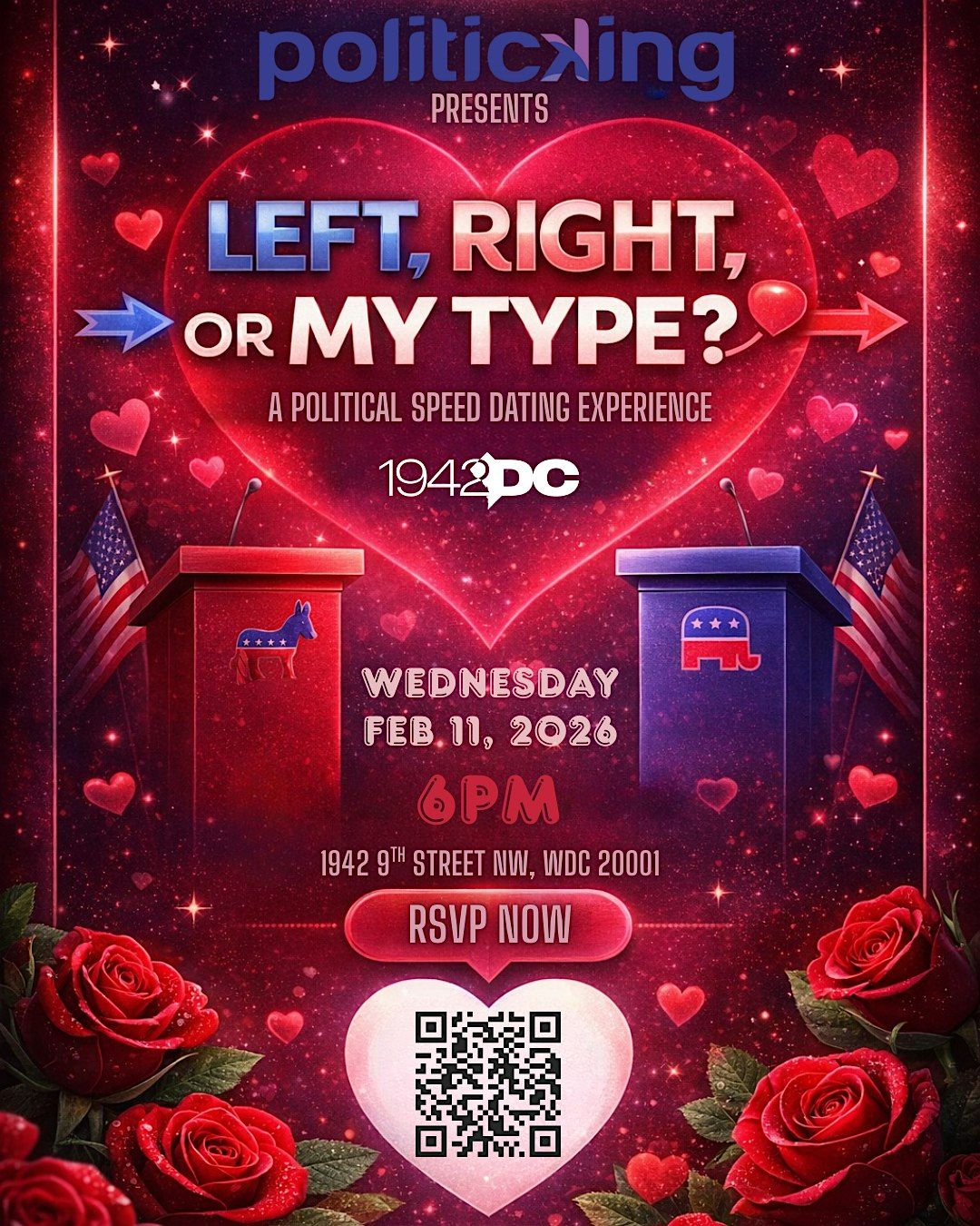 Ready to mix politics with a little romance? Join us in person for a fun and fast-paced speed dating event where you’ll chat, laugh, and maybe find your perfect match—whether they’re left, right, or just your type! It’s all about connecting over great convos and discovering chemistry beyond the usual dating scene. Don’t miss this unique chance to mingle, debate, and spark something special in a relaxed, informal vibe. See you there!