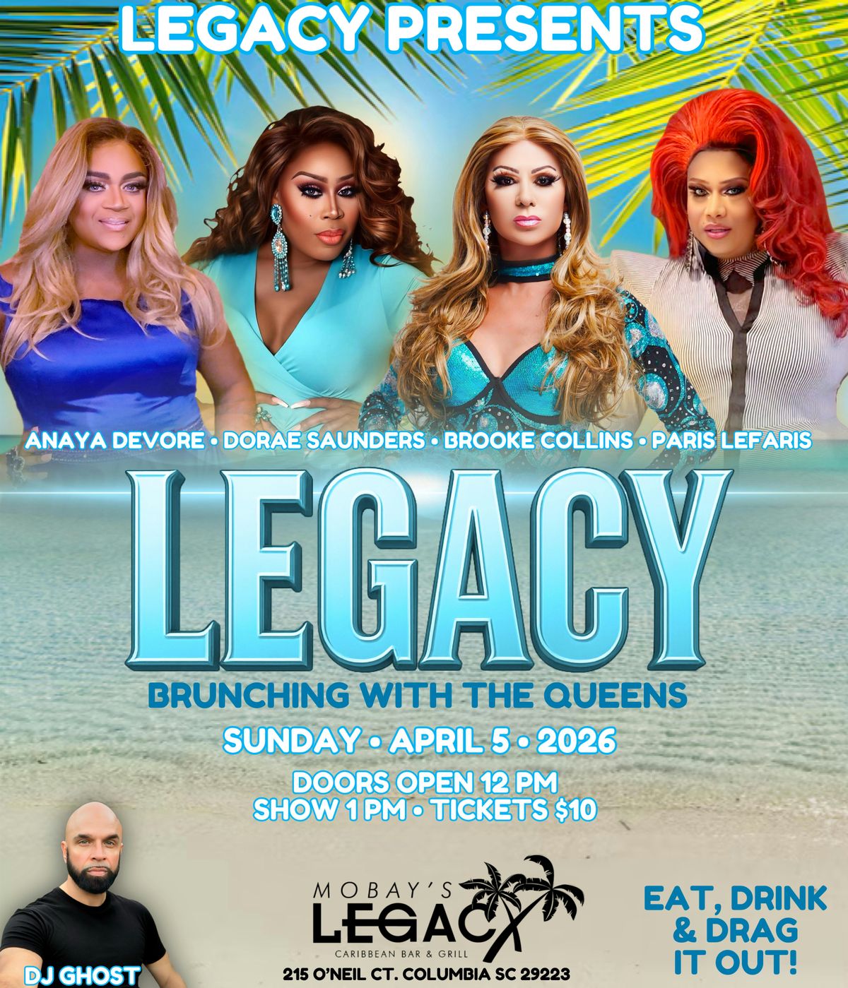 SUNDAY, APRIL 5, 2026 Join us at Legacy Caribbean Bar & Grille for a fantastic drag brunch!