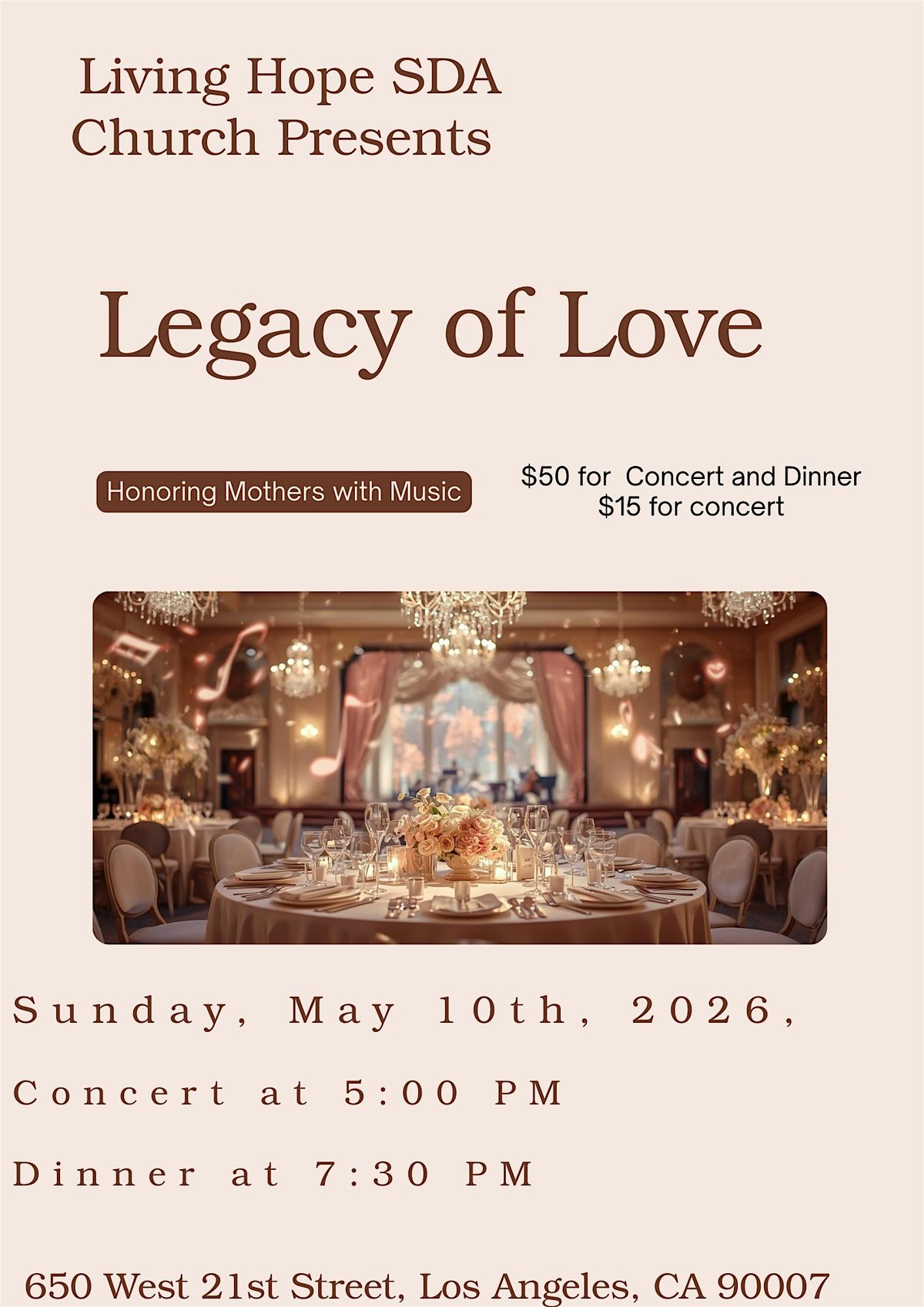 Join Us for the Legacy Of Love Living Hope SDA Mother’s Day Gala!
