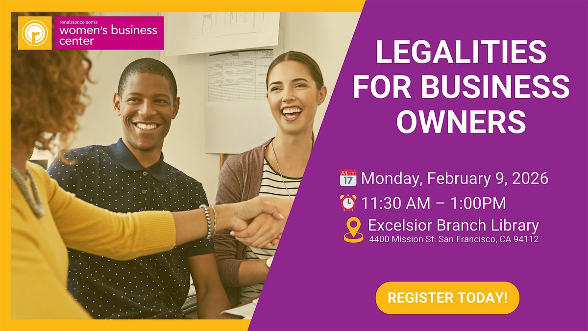 Designed for existing business owners, this workshop covers the key legal considerations needed to protect and grow your business. Topics include business structure review, contracts, intellectual property, licenses and permits, liability protection and compliance with regulations.