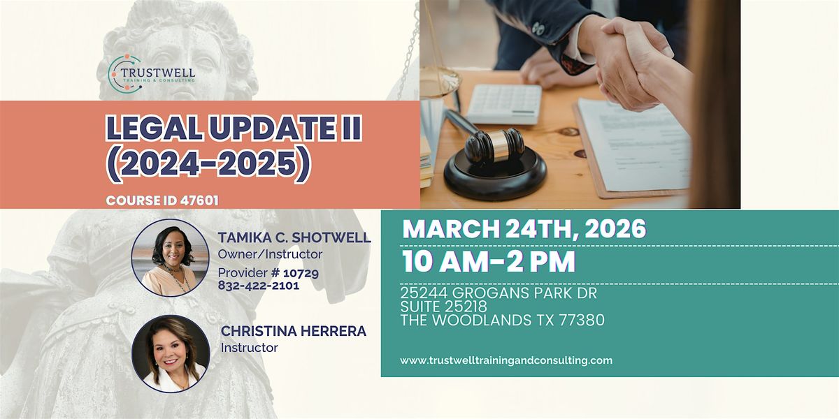 The course covers: Fiduciary Duties and Ethical Behavior of License Holders, Water and Mineral Rights, Ad Valorem Taxes and Valuation.