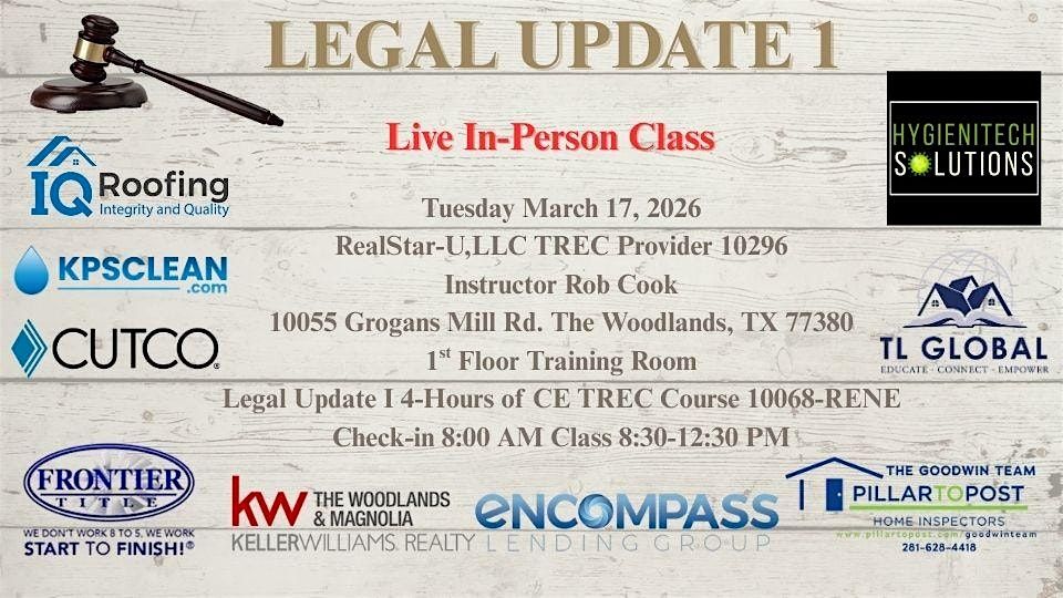 Legal Update I TREC course 10068-RENE This 4-hour is mandatory for all license holders every 2 years. Chapter 1 covers TREC Rule Changes, Updates and Legislative Changes. Chapter 2 covers Promulgated Contract Forms and addenda. Chapter 3 covers Introduction to Fair Housing. Chapter 4 Fair Housing: Do’s and don’t, Property Management
