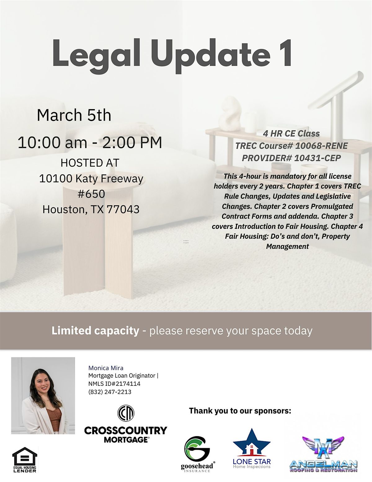 Chapter 1 covers TREC Rule Changes, Updates and Legislative Changes. Chapter 2 covers Promulgated Contract Forms and addenda. Chapter 3 covers Introduction to Fair Housing. Chapter 4 Fair Housing: Do’s and don’t, Property Management