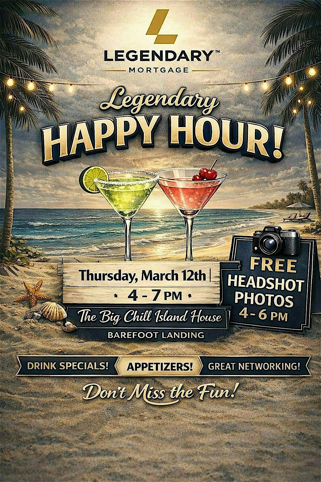 Ready to unwind and have a blast? Join us for the Legendary Happy Hour – the ultimate in-person hangout! Enjoy FREE headshot photos for realtors by Weston Media from 4-6pm, great vibes, awesome drinks, appetizers, and tons of laughs. Whether you're catching up with co-workers or making new ones, this is the spot to be. Don’t miss out on the fun and priceless networking. See you there!