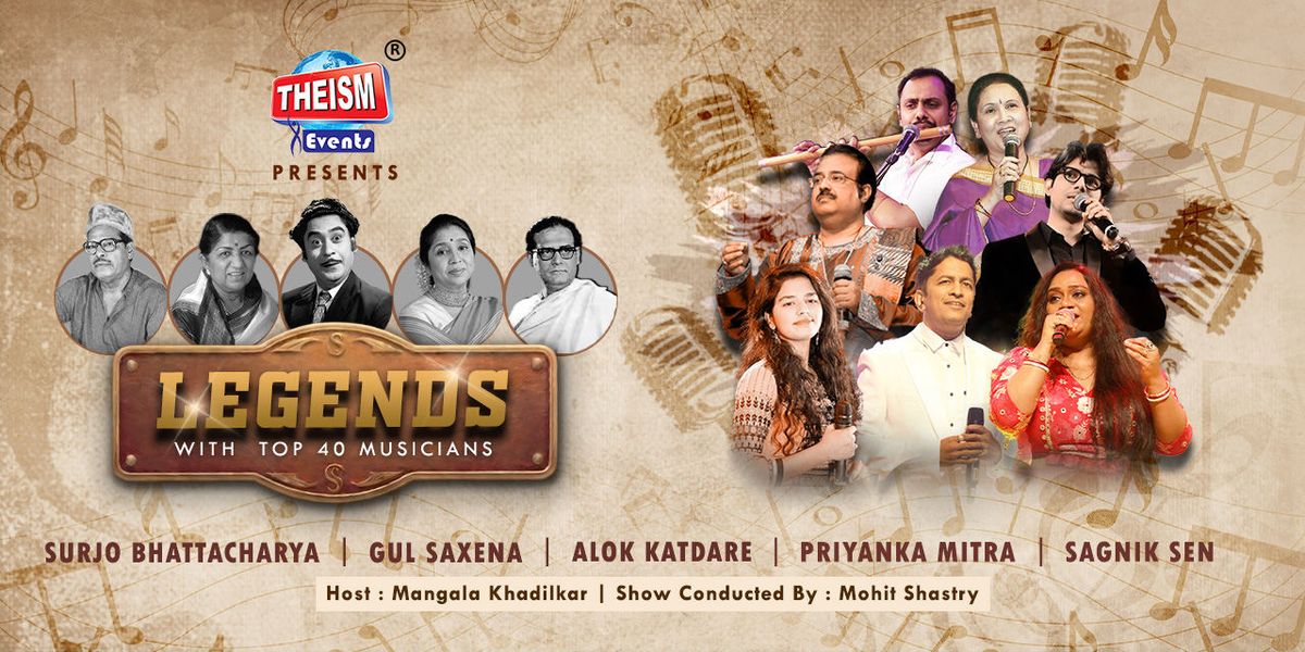 Step into an evening of timeless melodies with LEGENDS, a spectacular live musical celebration dedicated to the golden voices of Indian music. This grand concert pays tribute to the iconic legends — Kishore Kumar, Manna Dey, Hemant Kumar, Lata Mangeshkar and Asha Bhosle — whose songs continue to live in our hearts across generations.