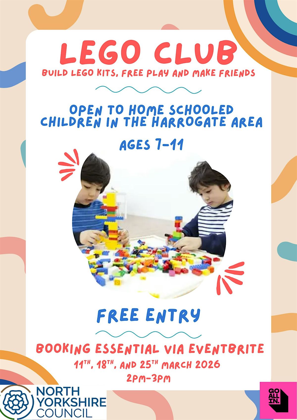 A free Lego club open to home schooled children in the Harrogate Area aged 7-11. Build Lego kits, free play and make friends.About this Event