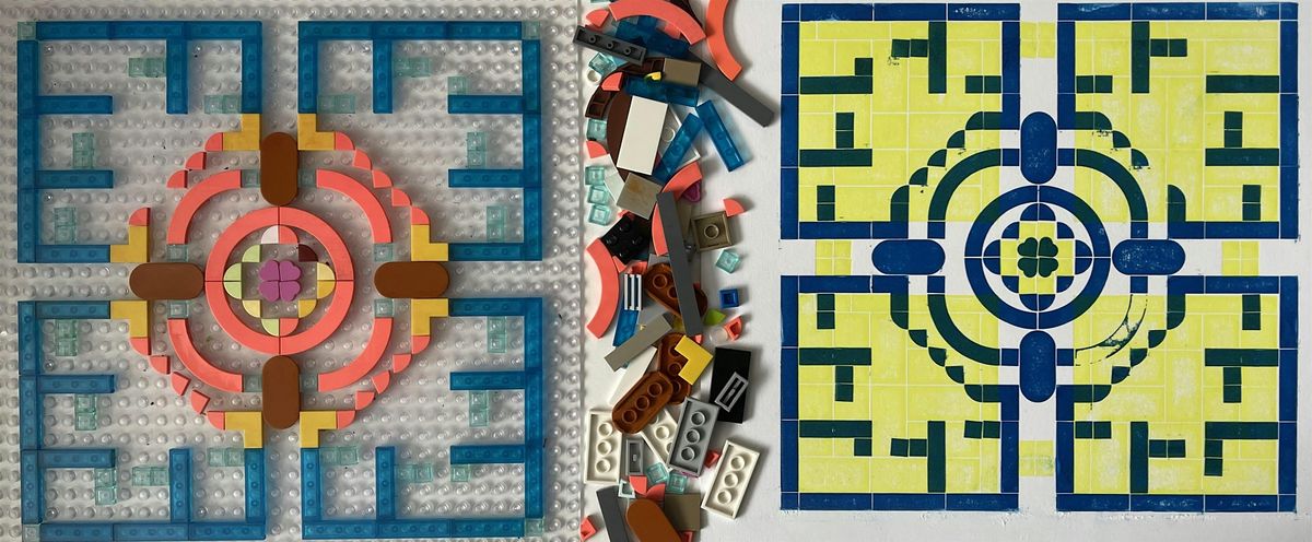 Design and create bold geometric patterns using LEGO tiles, then print your designs using a press. You’ll explore repetition, symmetry, and layered colour to produce a striking print.