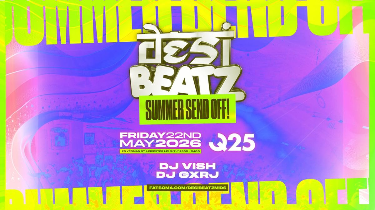 WE'RE BACK! Desi Beatz returns to Leicester for the Summer Send Off 2026 with the highly anticipated, legendary #SUMMERSENDOFF - delivering the biggest acts & the best venues consistently year after year, we have heard your demands to come and so HERE WE ARE! We are proud to continue the great tradition of celebrating South Asian culture for students attending University all over the U.K!WE RETURN IN LEICESTER!! : we head to QUARTER 25 Leicester to end off the academic year in biggest way possible! : so expect 400+ ravers & BANGERS ALL NIGHT from our incredible DJ's : GET YOUR TICKETS NOW!!