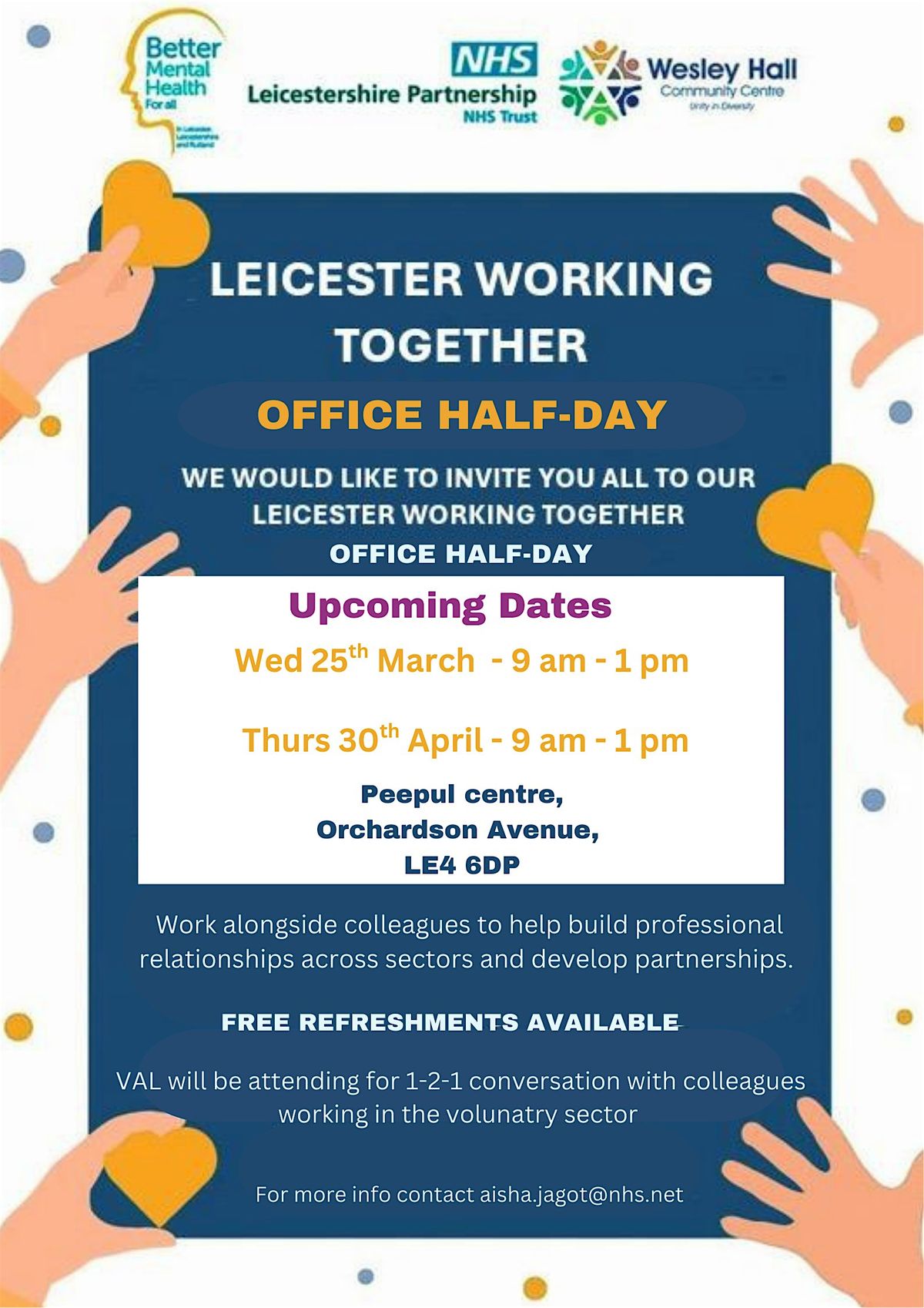 This has been organised by Neighbourhood Leads from Leicestershire Partnership NHS Trust and Wesley Hall.