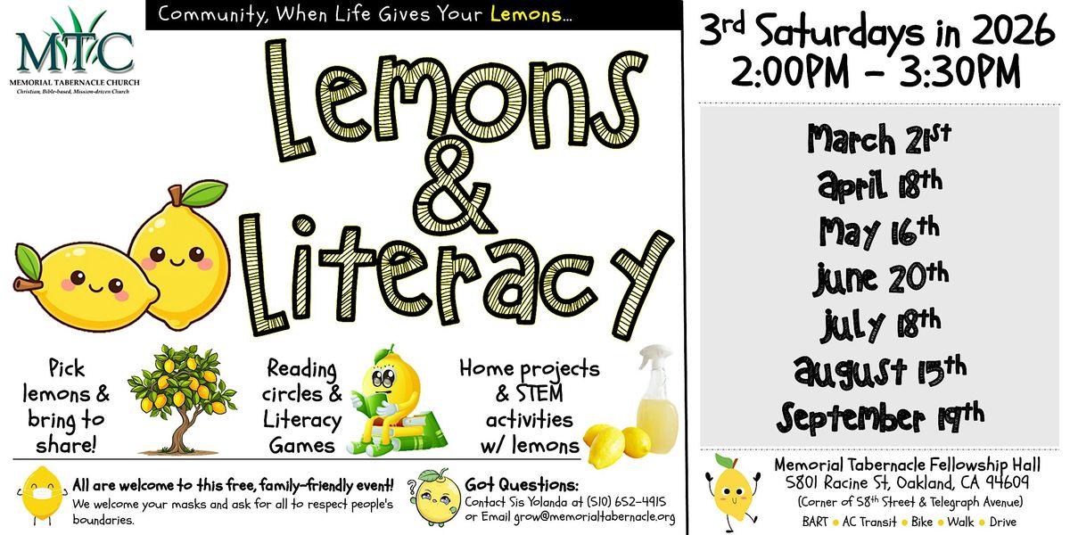 Pick a few lemons off of your tree (if you have one) and meet us in the MTC Fellowship Hall for Lemons & Literacy!